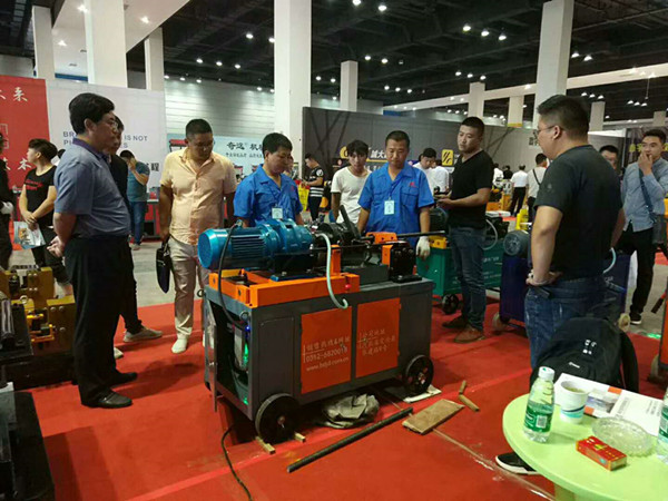 在交易會(huì)上,我公司推出了2018年研發(fā)的最新產(chǎn)品JBG-40型全自動(dòng)滾絲機(jī),該機(jī)型采用PLC可編程控制,可實(shí)現(xiàn)鋼筋的自動(dòng)夾緊及機(jī)床的自動(dòng)進(jìn)給,鋼筋的夾緊、定位及螺紋加工可實(shí)現(xiàn)一鍵操作,操作簡便,運(yùn)行穩(wěn)定,加工效率高。在現(xiàn)場分多次為數(shù)百位參會(huì)經(jīng)銷商進(jìn)行了操作演示,效果良好,得到了廣大經(jīng)銷商的一致好評(píng),會(huì)上簽訂了意向訂單十六個(gè)。