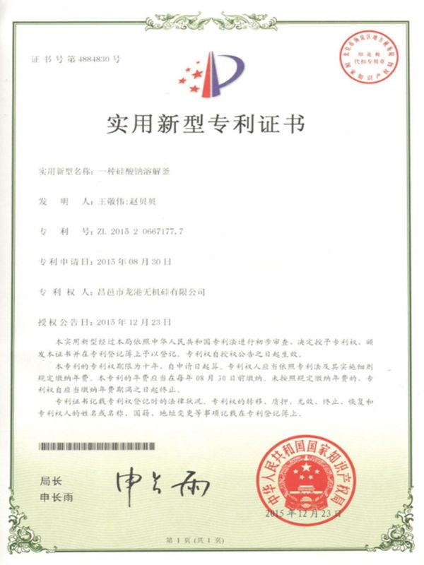 科技成果 科技創(chuàng)新平臺 TECHNOLOGICAL HOME-TECHNOLOGICAL Utility model patent certificate Related Information New Silicon Based Flame RetardantLiquid Potassium SilicateSodium OrthosilicateSodium Silicate LiquidSodium Metasilicate Pentahydrate