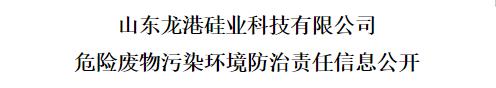 山東龍港硅業(yè)科技有限公司危險(xiǎn)廢物污染環(huán)境防治責(zé)任信息公開